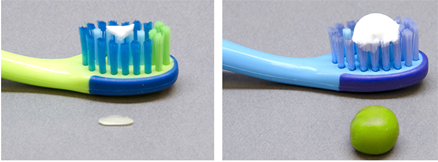4. 兒童使用含氟牙膏用量建議由家長幫忙擠壓:3歲以下每次最多米粒大小;3~6歲兒童每次最多使用豌豆大小。